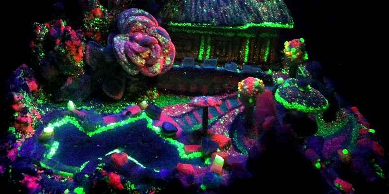 Visitors are recommended to take their time exploring this fully-immersive environment in what the owner dubs “participatory art.” As the black light comes on, all kinds of shapes come to life, with every surface lit by neon phosphorescence.