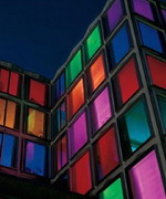 lobby showcases a virtual aquarium and houses an elevator with video displays.
