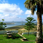 dazzling Huelva sun lights up the blue course of the Guadiana, until it